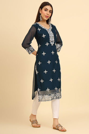 Engaging Teal Color Georgette Readymade Casual Wear Kurti