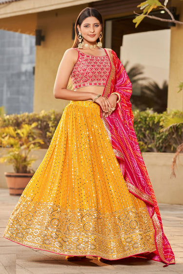 Engaging Yellow Color Sequins Embroidered Georgette Fabric Lehenga