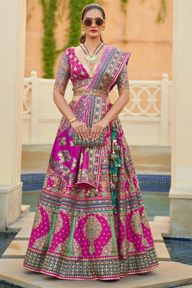 Enhance your Wedding Attire Sequined Silk Magenta Color Lehenga