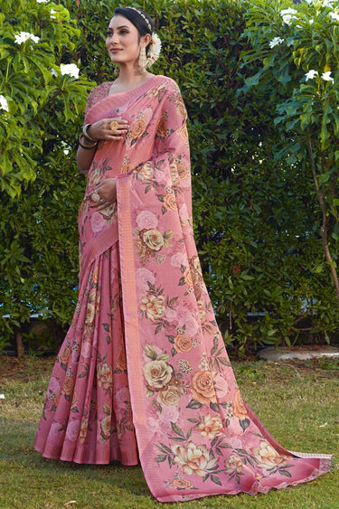 Entrancing Cotton Silk Fabric Festive Look Saree In Pink Color