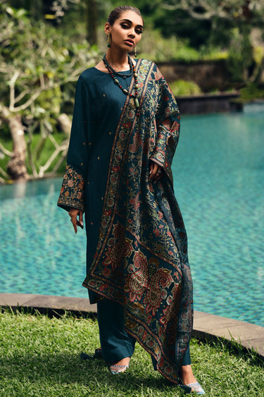 Ethnic Muslin Silk Teal Embroidered Pakistani Suit