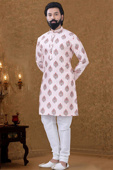 Ethnic Wear Cotton Fabric Peach Color Supreme Kurta Pyjama