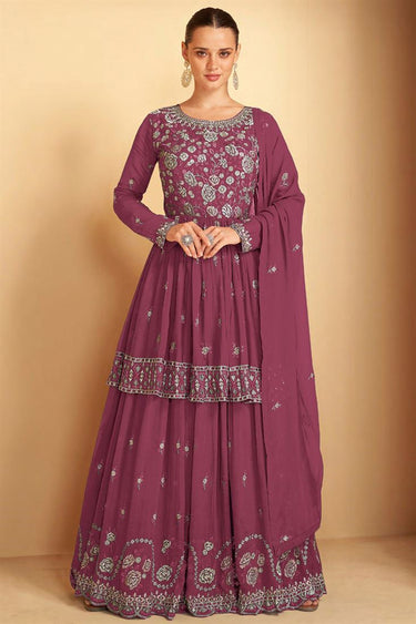 Eugeniya Belousova Pink Color Function Wear Solid Georgette Palazzo Suit