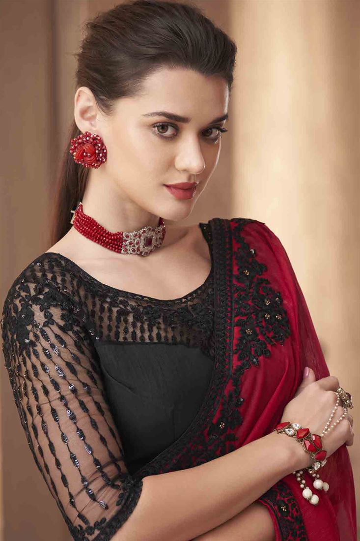 Eugeniya Belousova Red Color Awesome Border Work Art Silk Fabric Saree