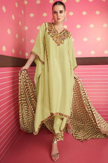 Eugeniya Belousova Satin Silk Captivating Yellow Color Kaftan Style Salwar Suit