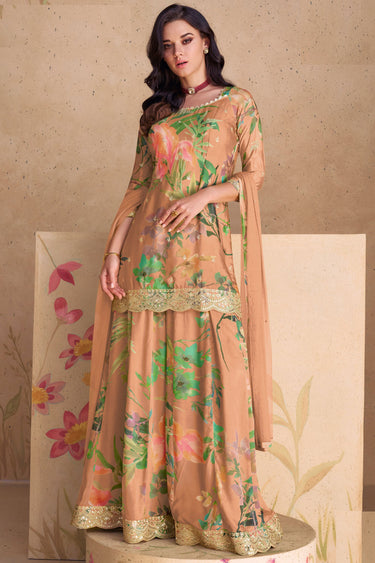Eugeniya Belousova Trendy Chinon Fabric Peach Color Readymade Palazzo Suit
