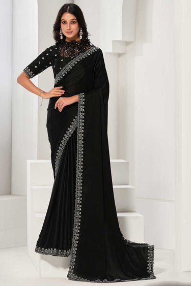 Excellent Crepe Satin Silk Fabric Black Color Saree