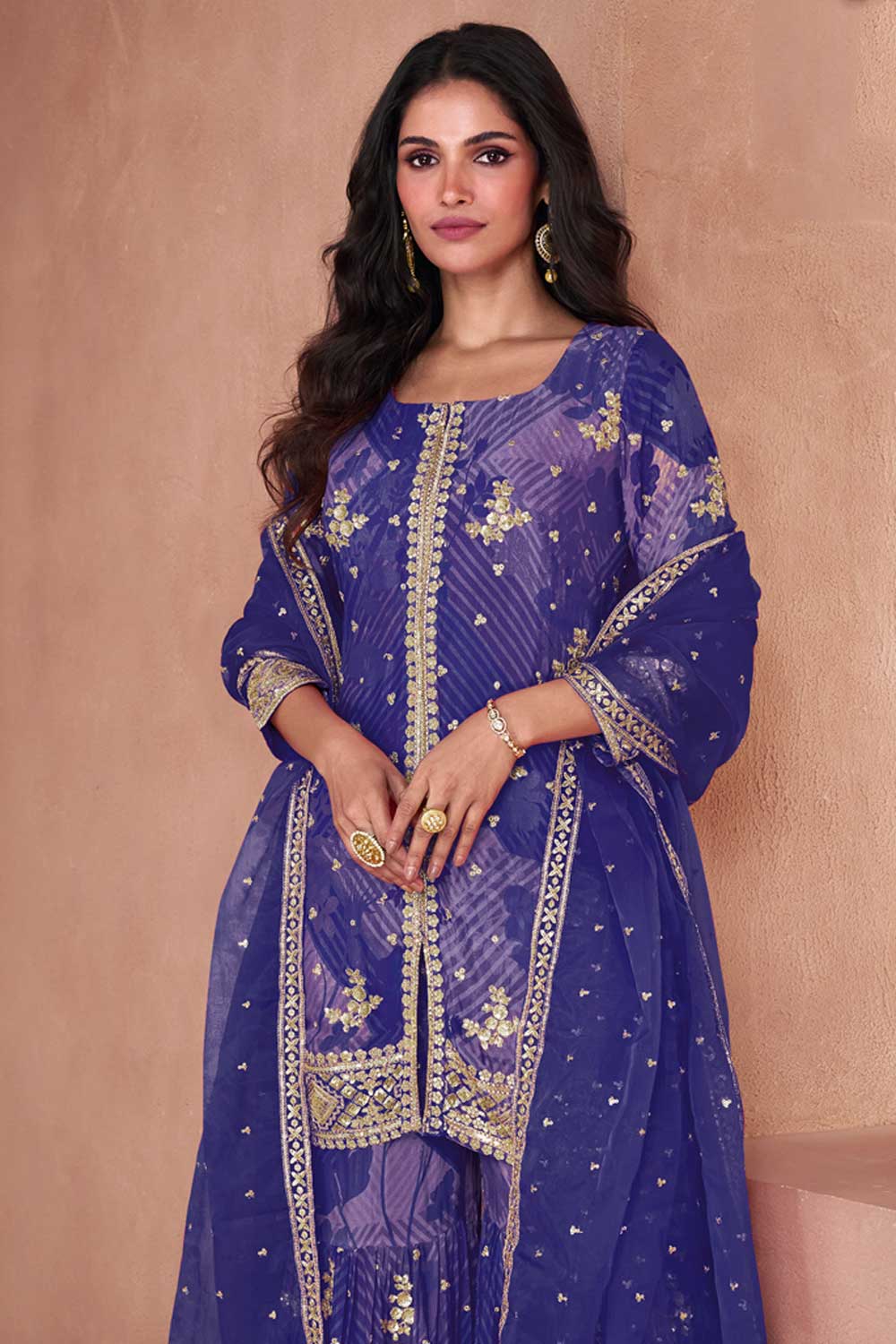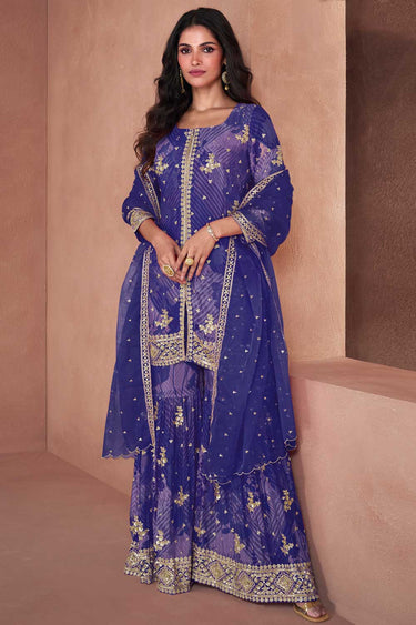 Excellent Georgette Fabric Purple Color Palazzo Suit
