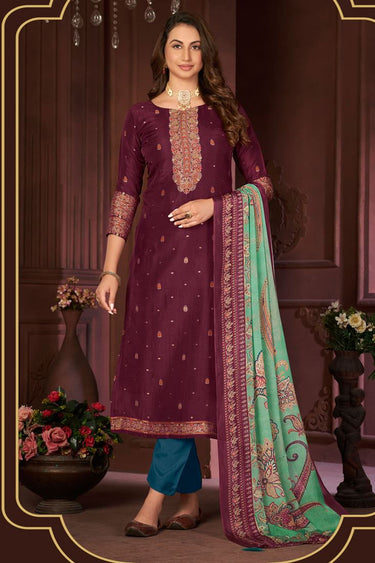 Excellent Jacquard Fabric Burgundy Color Festive Salwar Suit