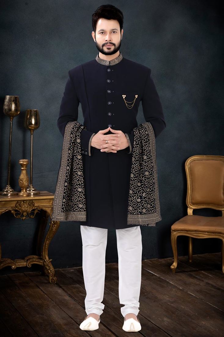 Excellent Navy Blue Color Rayon Fabric Indo Western