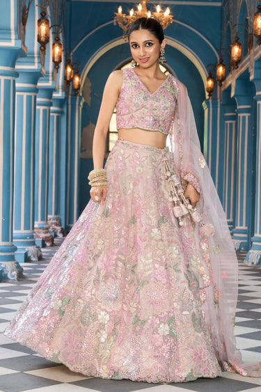 Excellent Net Pink Wedding Wear Lehenga Choli