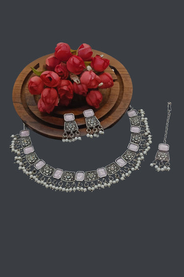 Excellent White Color Oxidised Material Necklace With Earrings and Mang Tikka