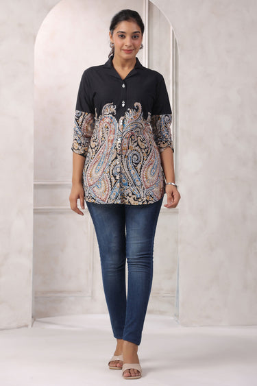 Exclusive Black Floral Printed Cotton Tunic