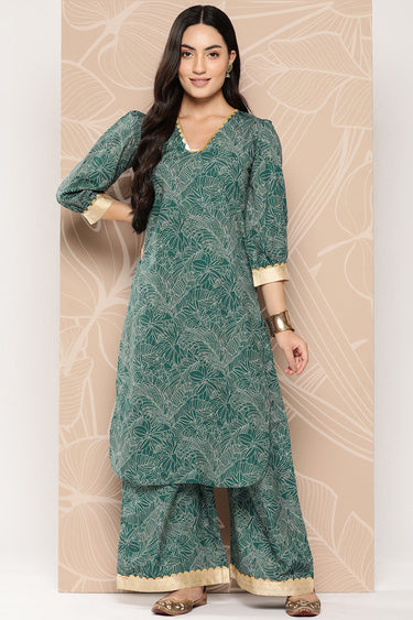 Exclusive Dark Green Crepe Fabric Function Wear Floral Printed Readymade Top With Bottom Set