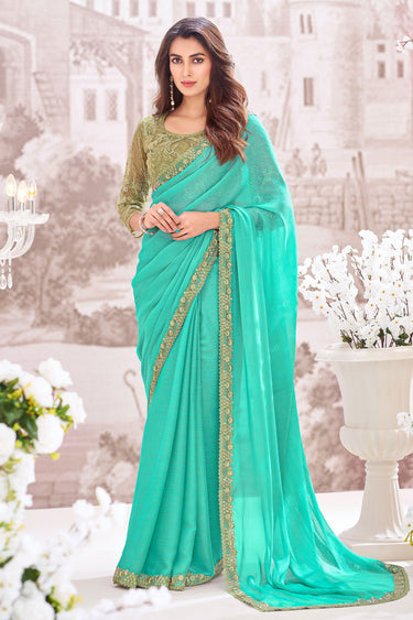 Exclusive Georgette Fabric Cyan Color Embroidered Saree
