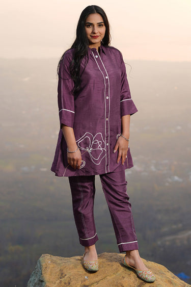Exclusive Grape Purple Silk Printed Co-Ord Set