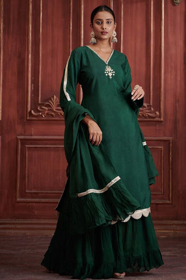 Exclusive Green Color Silk Fabric Hand Embroidered Party Wear Stylish Readymade Sharara Set