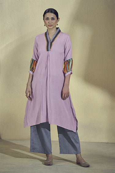 Exclusive Lavender Color Art Silk Function Wear Trendy Pleated Kurta Set