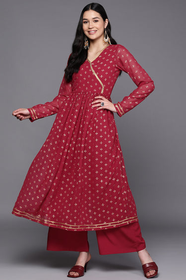 Exclusive Maroon Color Georgette Fabric Function Wear Printed Readymade Top With Bottom Set