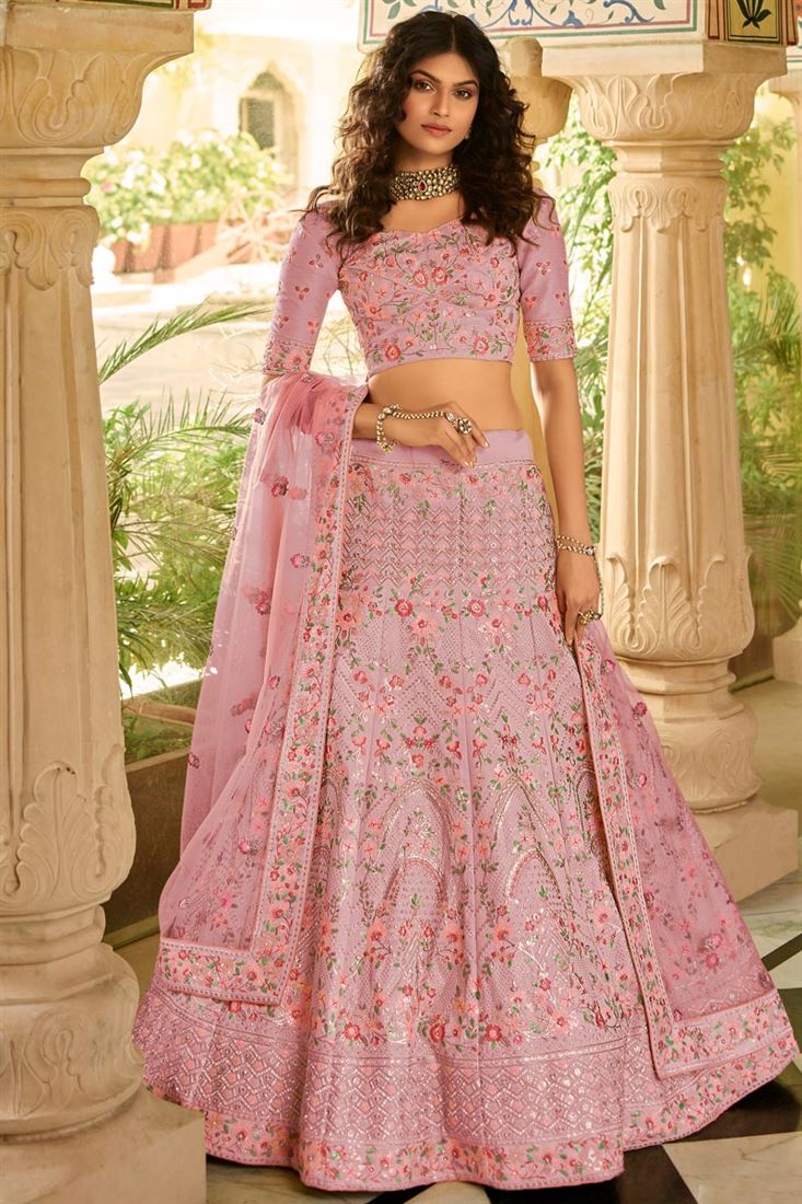 Exclusive Marvelous Pink Color Art Silk Fabric Lehenga Choli