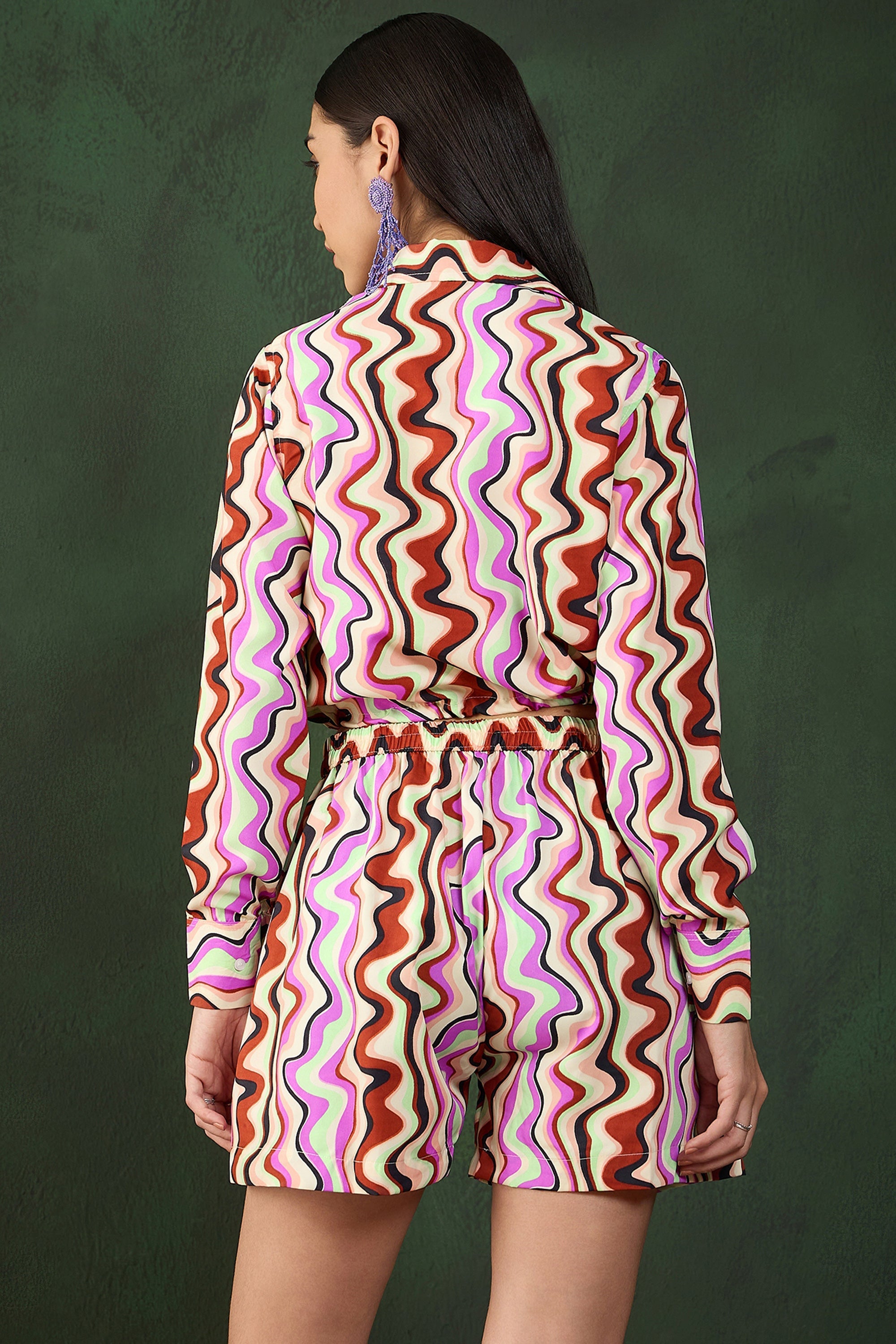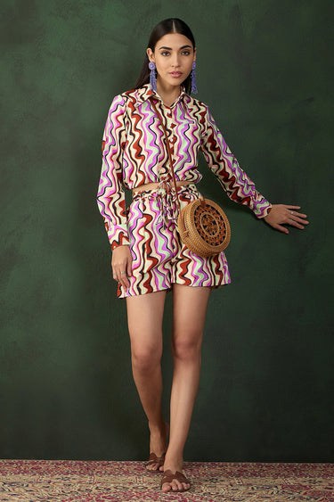 Exclusive Multi Color Crepe Chevron Printed Top With Matching Short Set