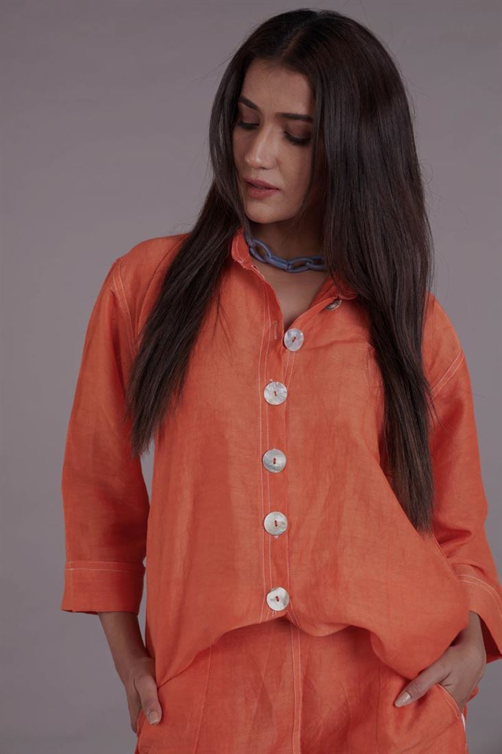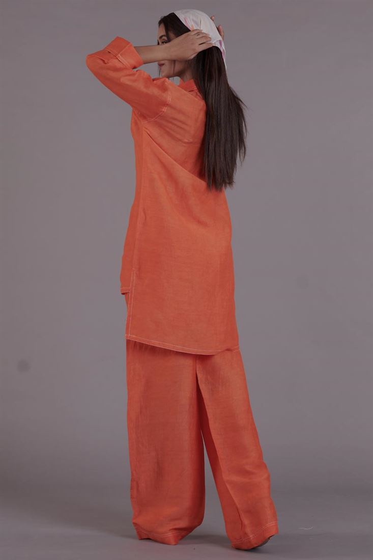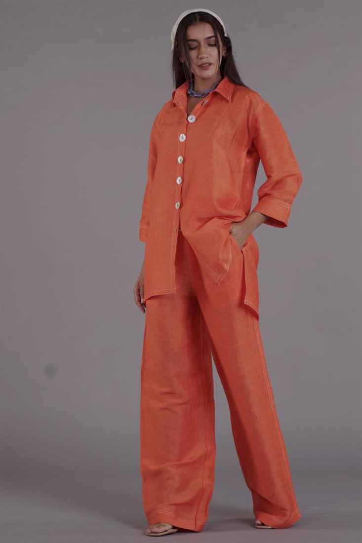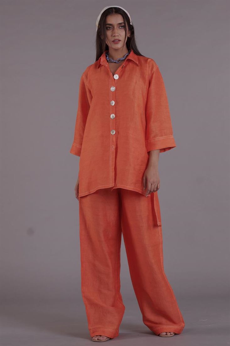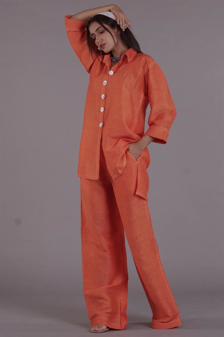 Exclusive Orange Color Linen Fabric Readymade Co Ord Set