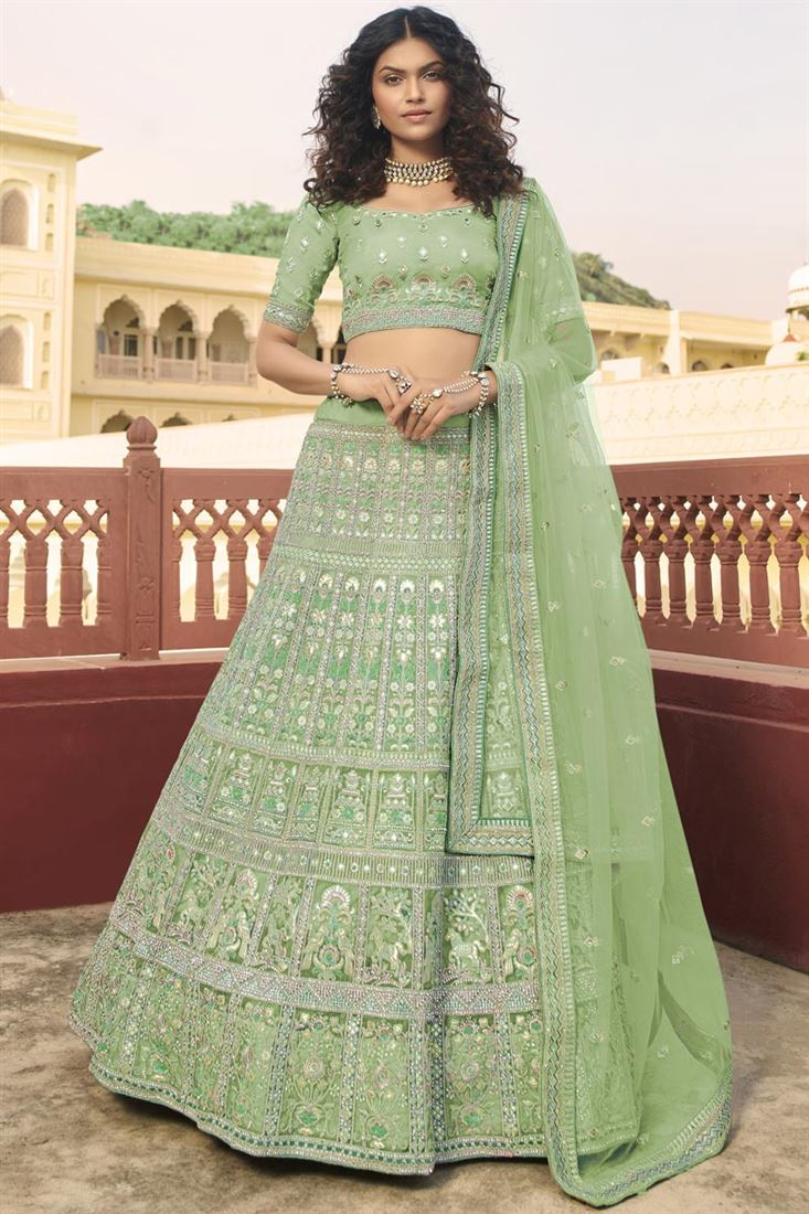Exclusive Organza Fabric Sea Green Color Gorgeous Lehenga Choli