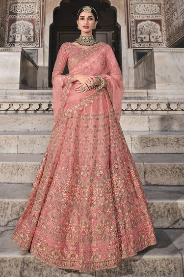 Exclusive Peach Color Net Fabric Sequins Work Designer Wedding Wear Lehenga
