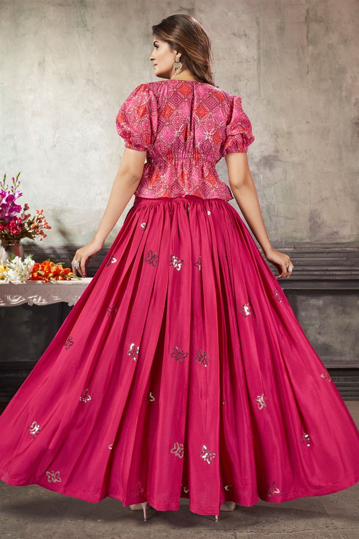 Exclusive Pink Color Amazing Top With Skirt In Art Silk Fabric