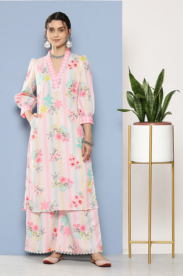 Exclusive Pink Color Crepe Fabric Function Wear Printed Readymade Top With Bottom Set