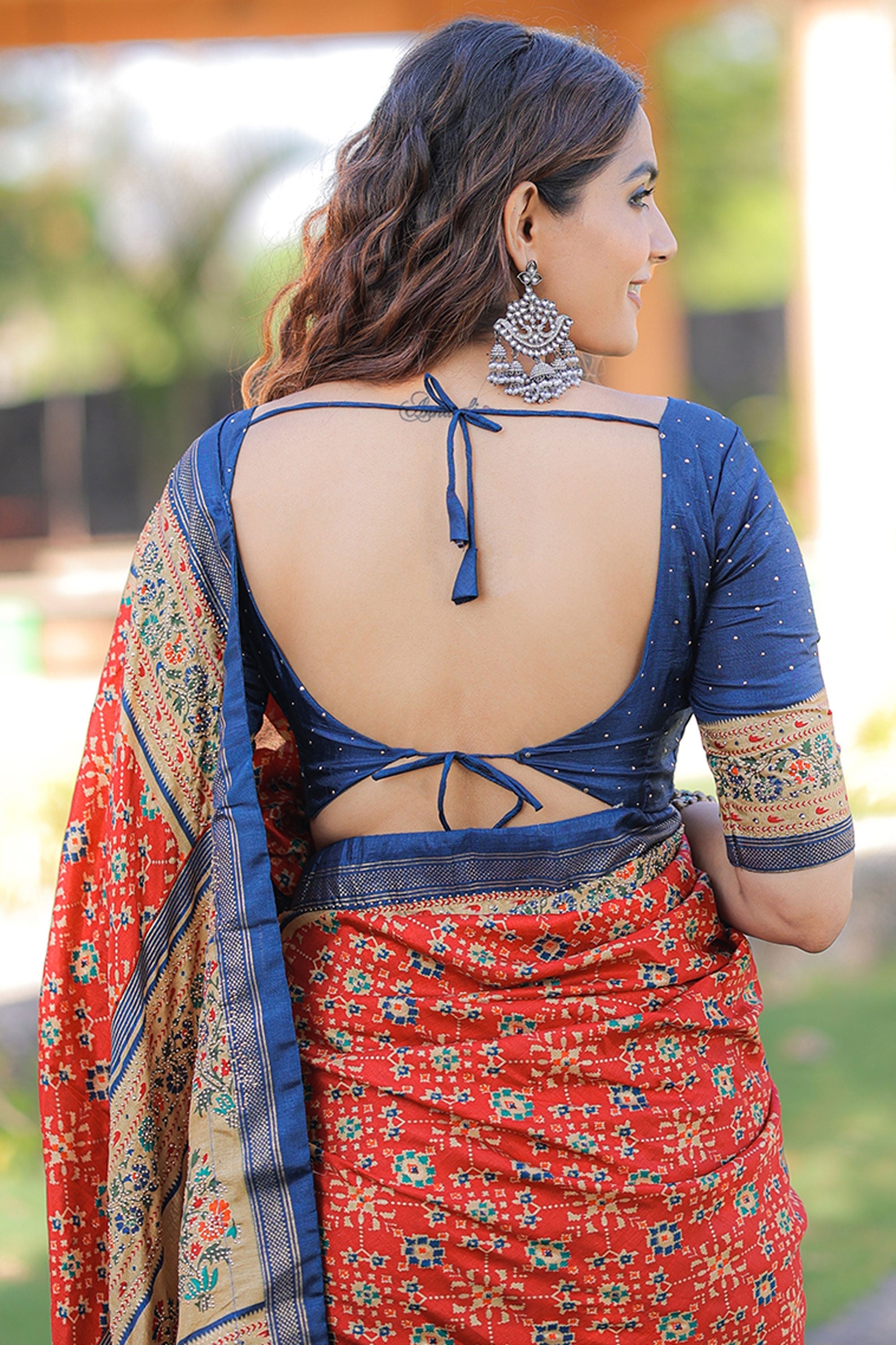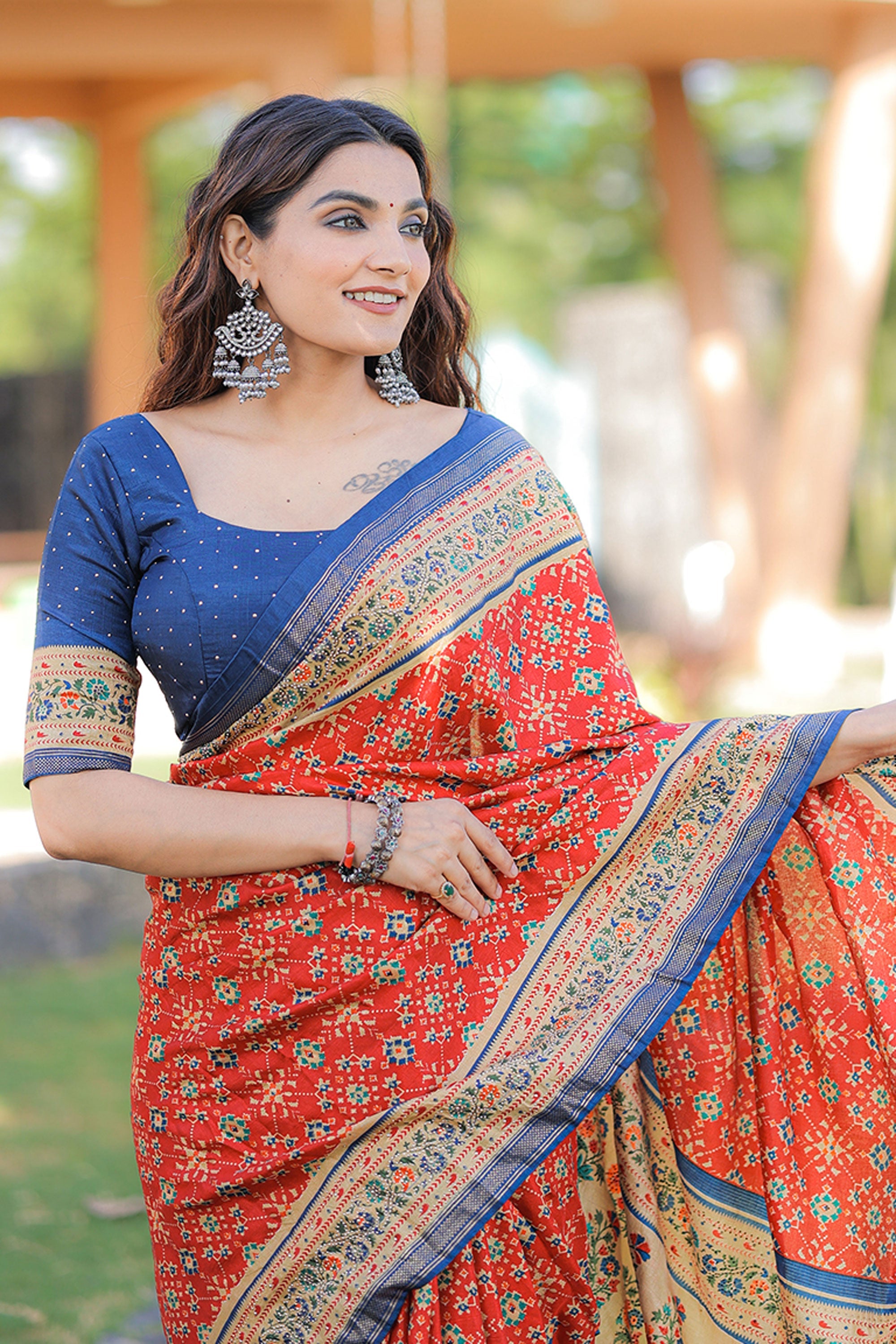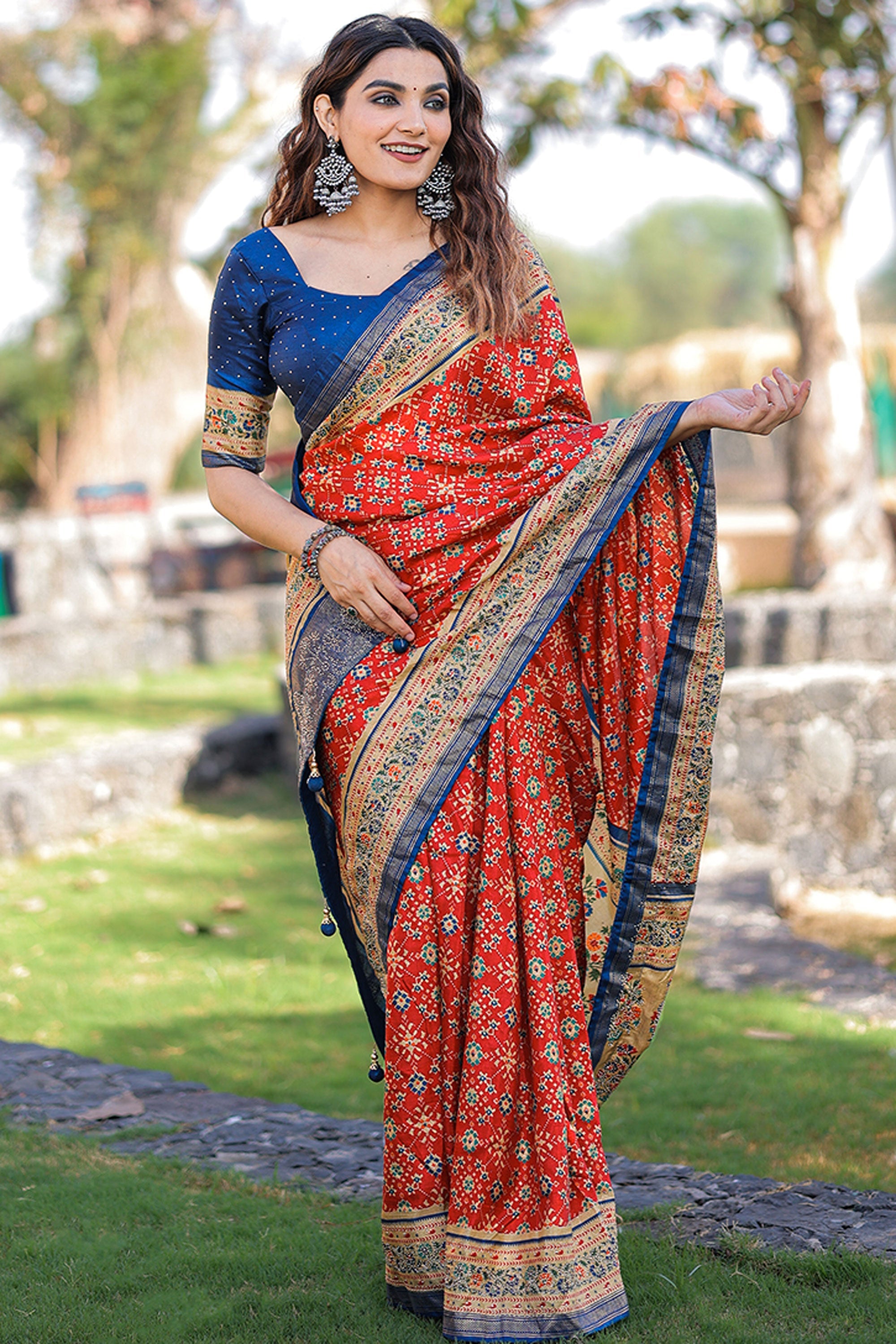 Exclusive Printed Patola Red Color Dola Silk Fabric Saree