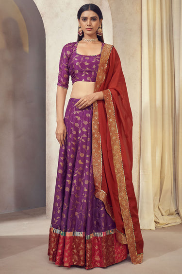 Exclusive Purple Color Dola Silk Jacquard Fabric Weaving Jacquard Readymade Designer Lehenga Choli