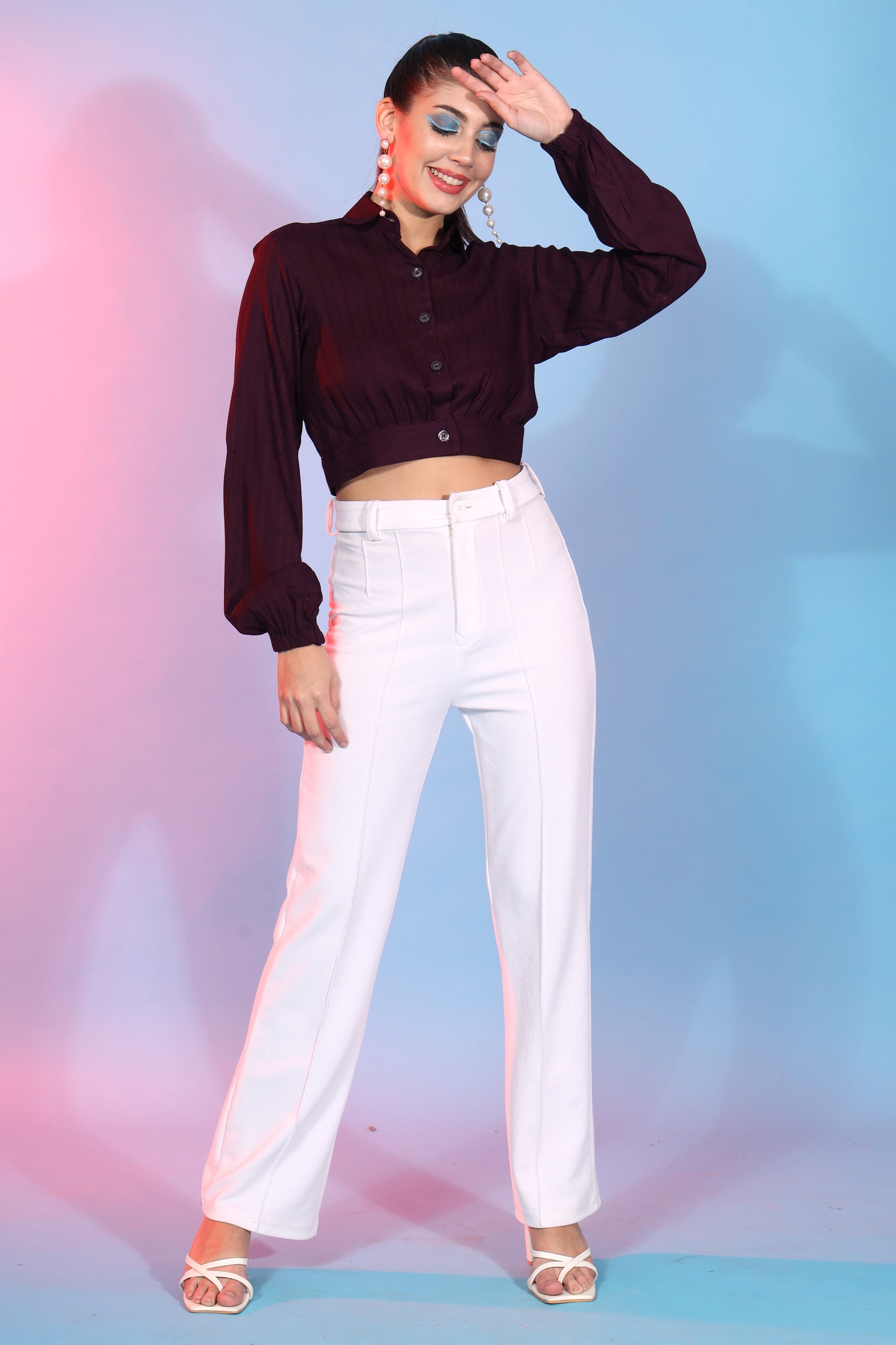 Exclusive Purple Rayon Fabric Self Design Readymade Top