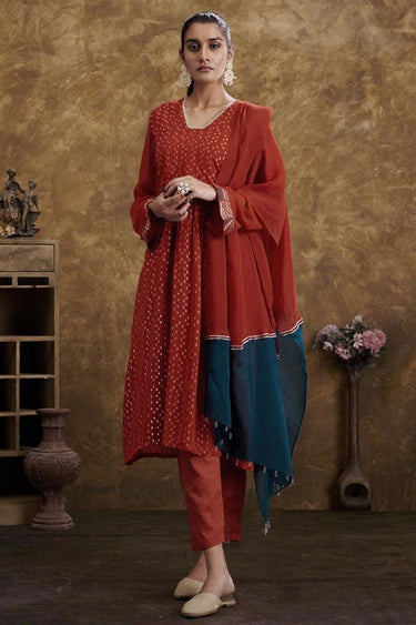Exclusive Rust Color Georgette Jacquard Fabric Majestic Readymade Kurta Set