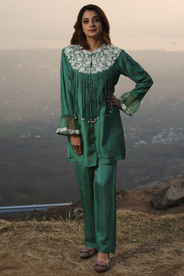 Exclusive Teal Green Cotton Embroidered Co-Ord Set