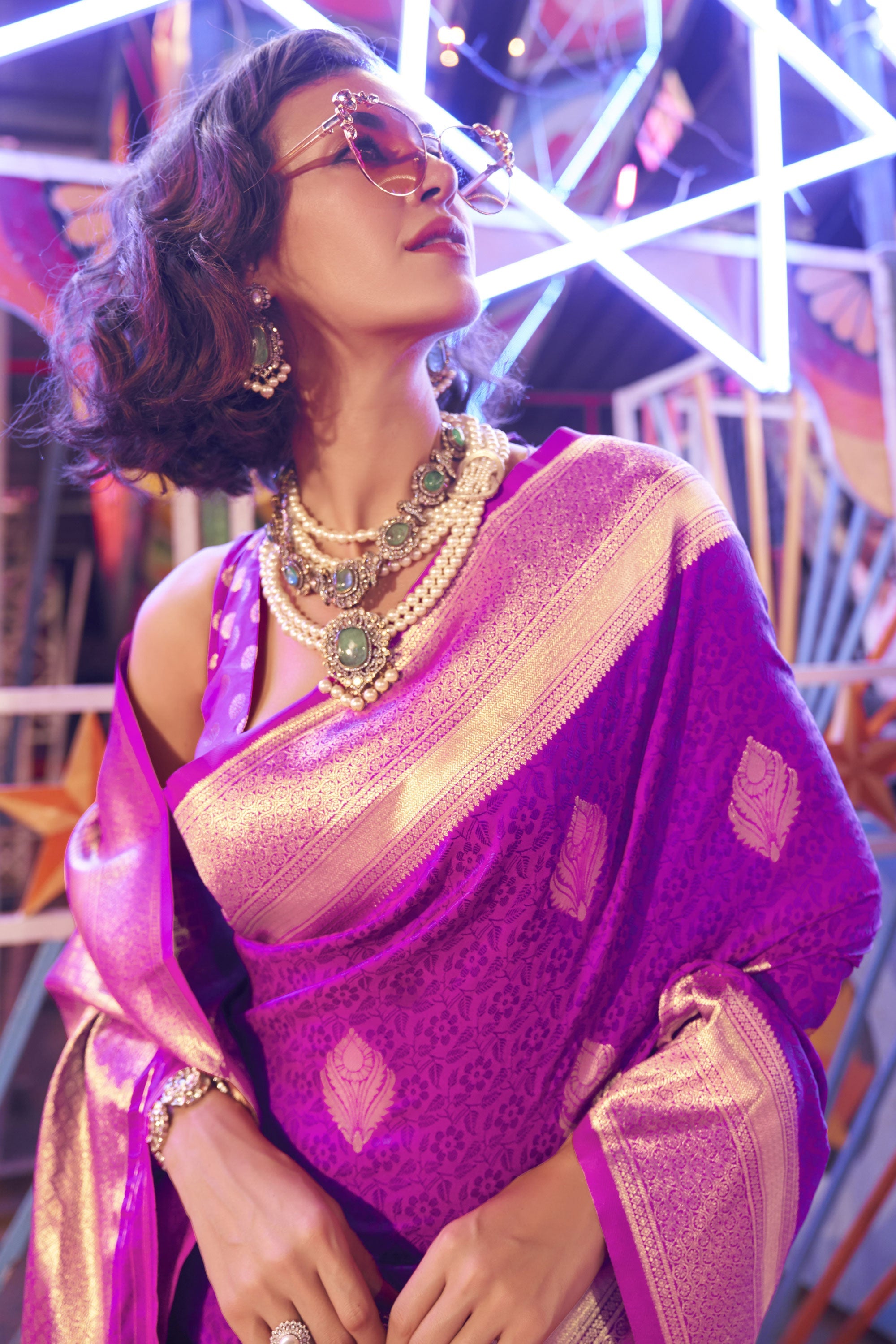 Exclusive Weaving Work On Rani Color Saree In Handloom Silk