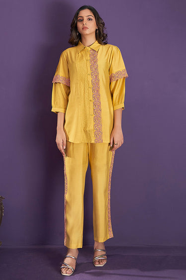 Exclusive Yellow Lace Embroidered Kurta And Trouser