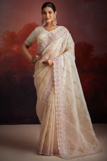 Fabulous Net Fabric Off White Color Sequins Work Saree
