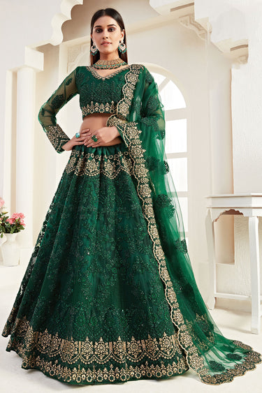 Fabulous Sangeet Wear Net Fabric Green Color Designer Lehenga