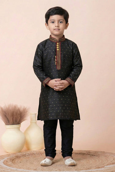 Fancy Fabric Black Festive Wear Readymade Kurta Pyjama For Boys