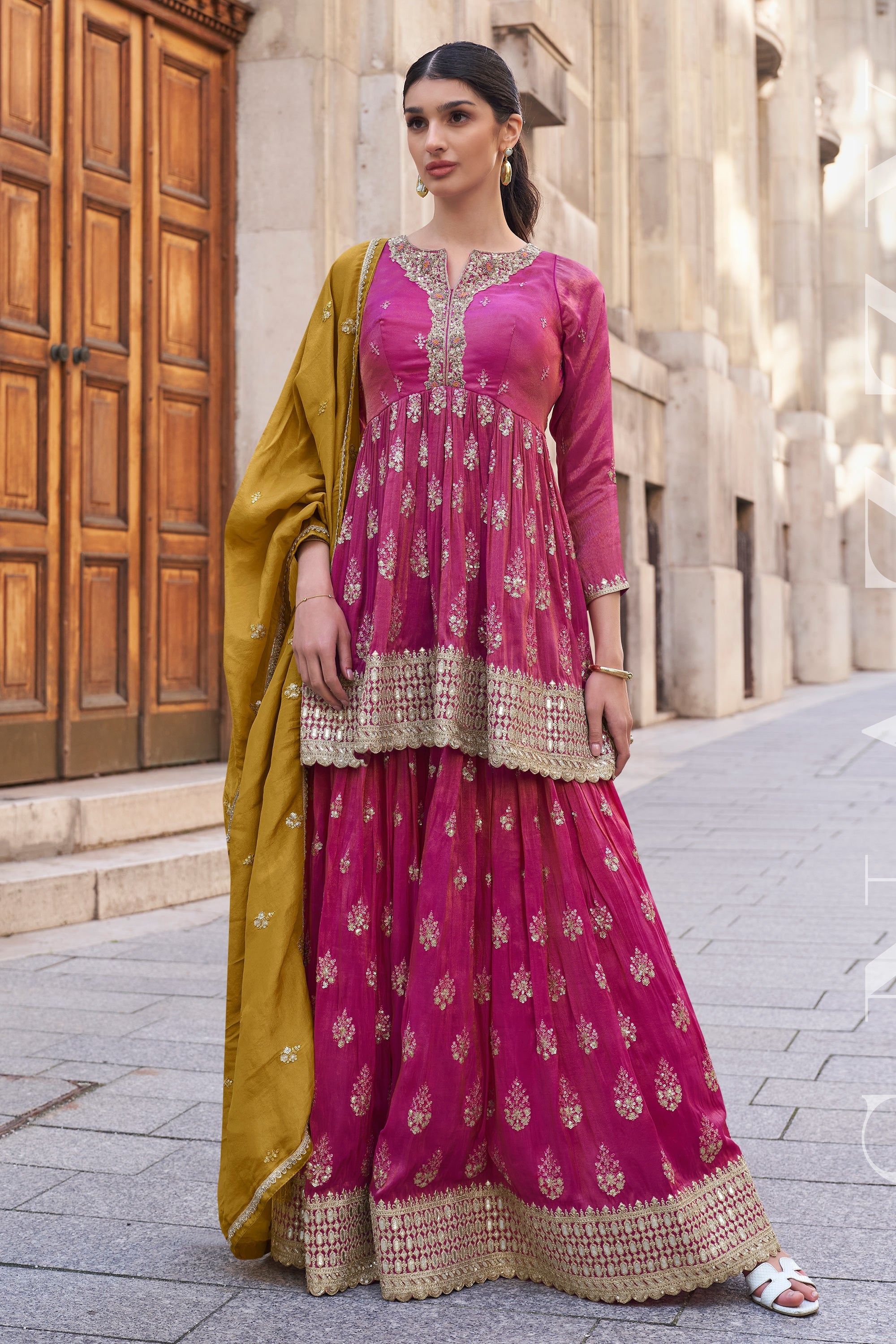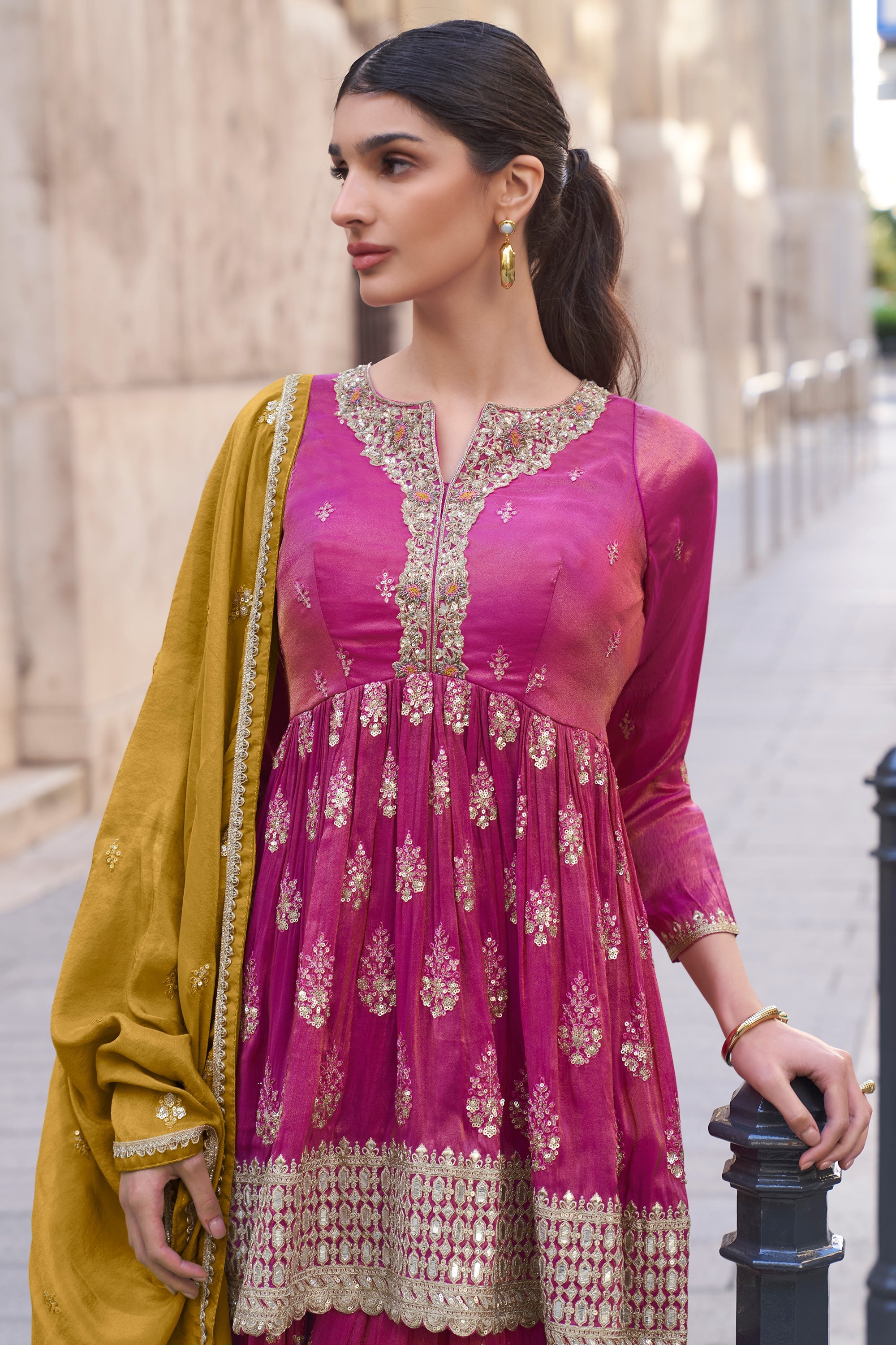 Fancy Fabric Embroidered Magenta Readymade Palazzo Suit