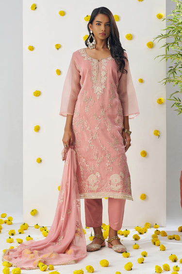 Fancy Fabric Embroidered Peach Designer Readymade Salwar Kameez