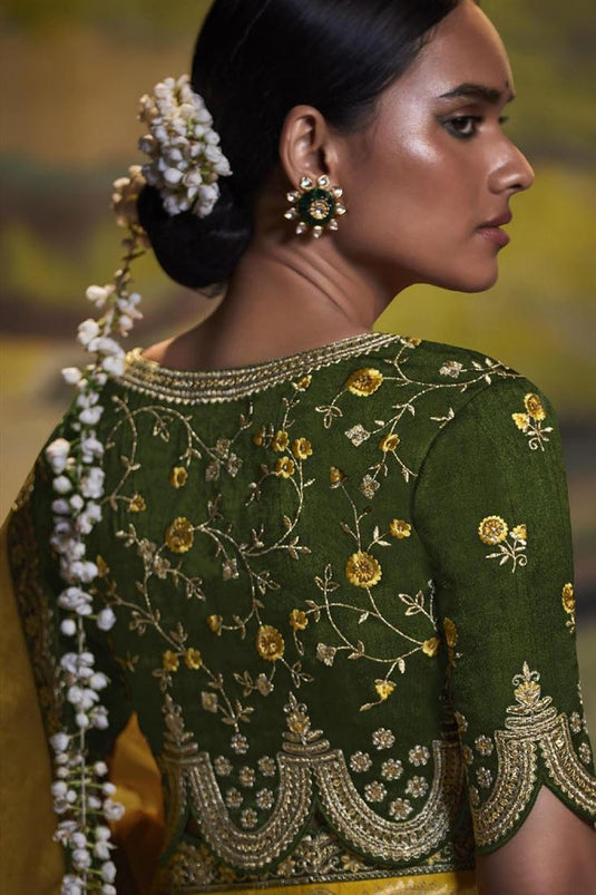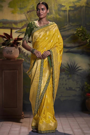 Fancy Fabric Mustard Color Festival Wear Solid Saree