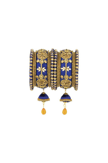 Fancy Handmade Silk Thread Navy Blue Designer Bangles With Latkan
