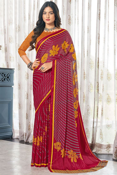 Fantastic Maroon Color Printed Designs Satin Saree In Casual Wear