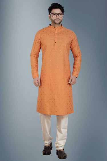 Fantastic Orange Color Kurta Pyjama For Men In Linen Fabric