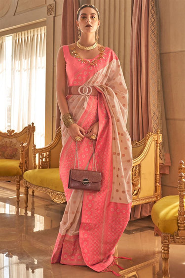 Fascinating Off White Color Silk Fabric Weaving Designs Saree