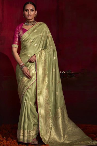 Fascinating Olive Color Art Silk Fabric Weaving Work Saree