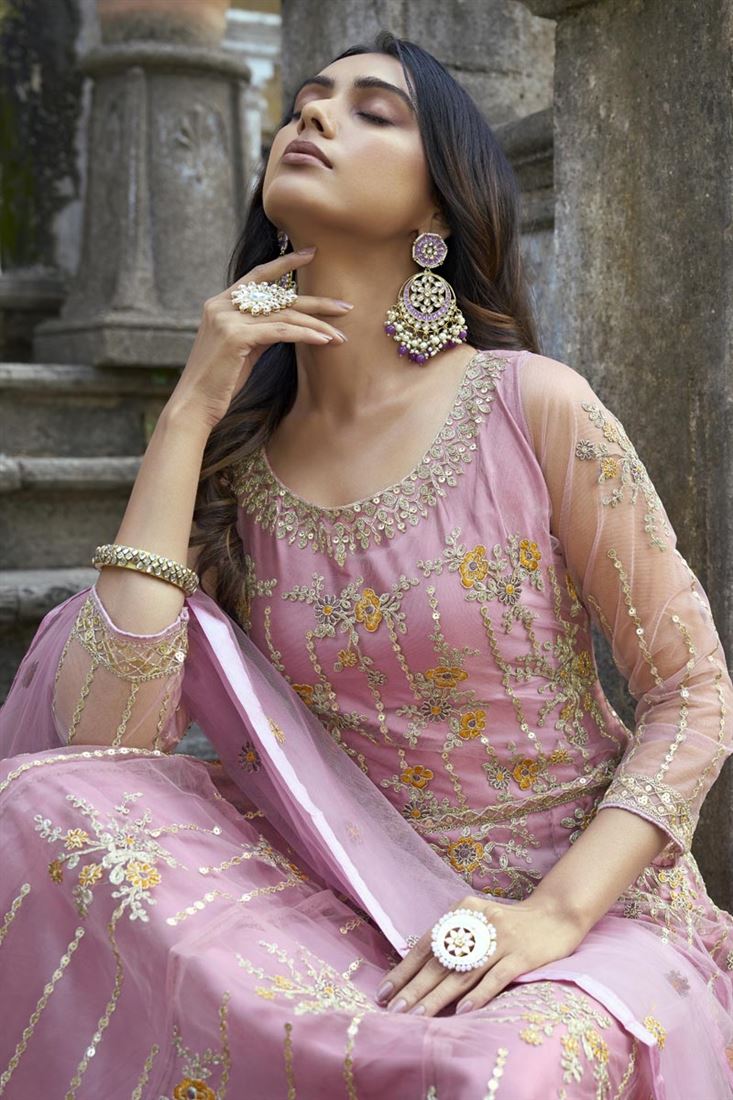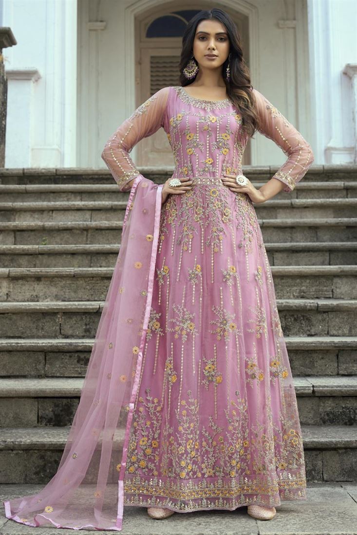 Fascinating Pink Color Net Fabric Function Style Anarklai Suit