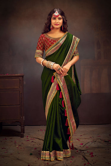 Fashionable Mehendi Green Color Border Work Banglori Silk Saree